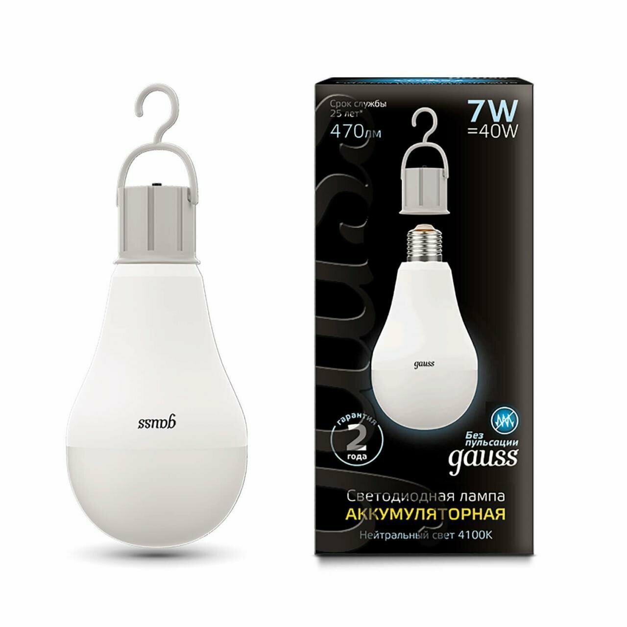 Лампа светодиодная Gauss E27 A60 7W 470L 4100K с литий-ионным аккумулятором