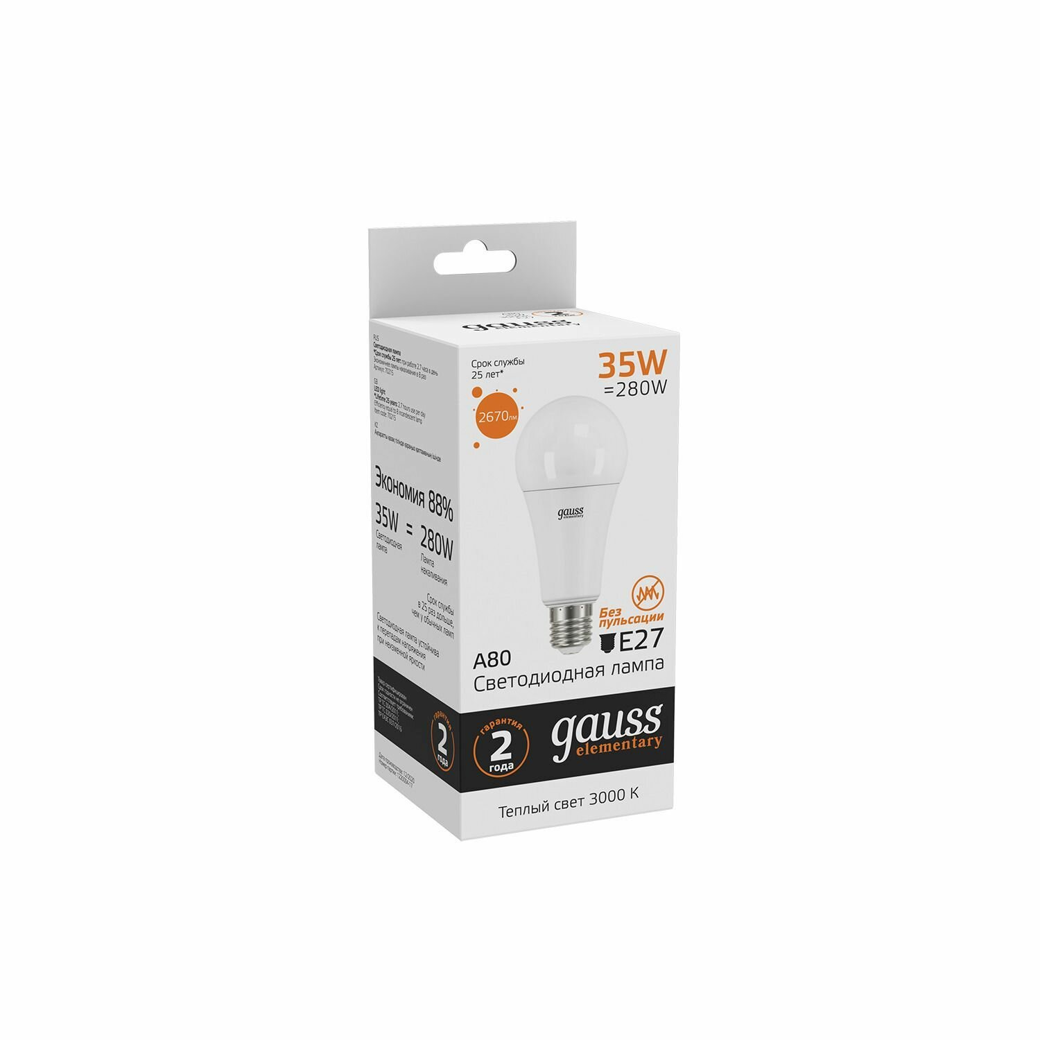 Комплект 30 штук, Лампа светодиодная Gauss Elementary 35W E27 3000K 2670lm 70215 23 275 ₽