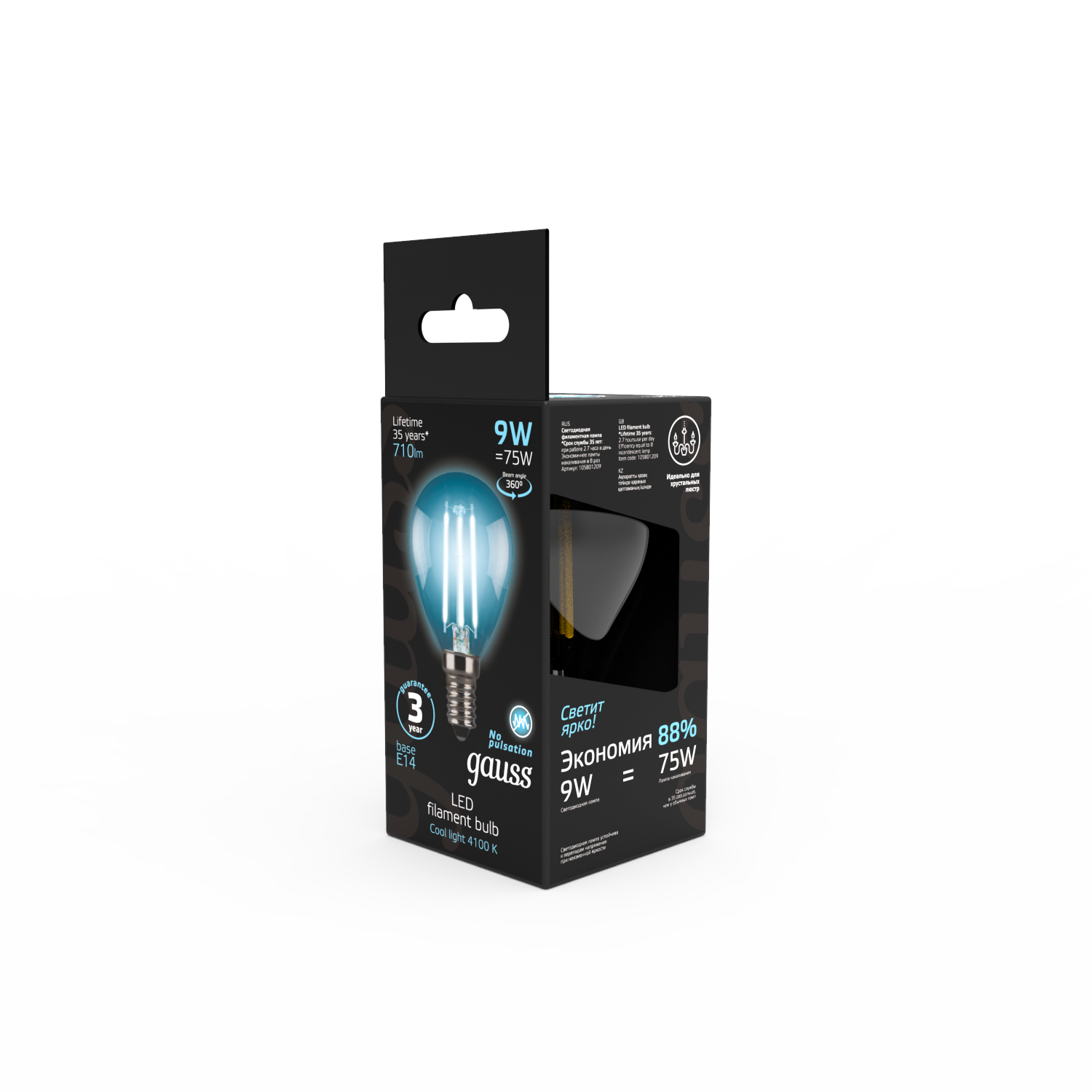 Отзывы на Лампочка светодиодная E14 Шар 9W нейтр белый свет 4100K упаковка 10 шт. Gauss Filament