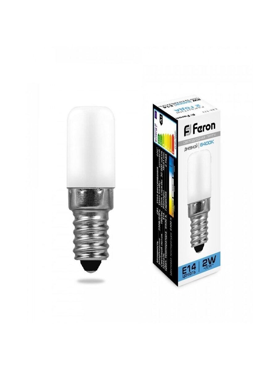 10 цен на (2 шт.) Светодиодная лампочка Feron лампа св/д для холодильников E14 2W(160lm) 6400K 6K матовая 51x18, LB-10 25988 Холодный белый. Цоколь E14