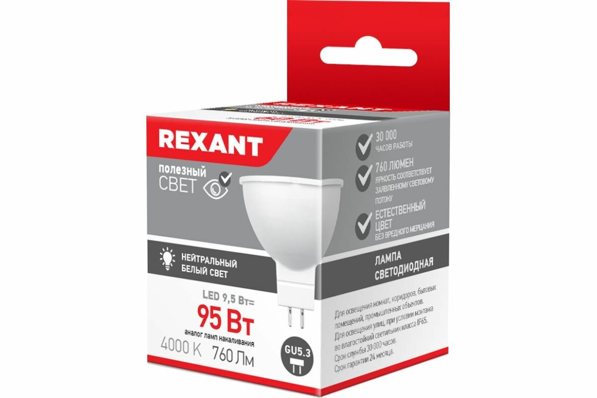 Отзывы на Светодиодная лампа REXANT Рефлектор-cпот 9,5Вт GU5.3 760лм 4000K ,2штуки
