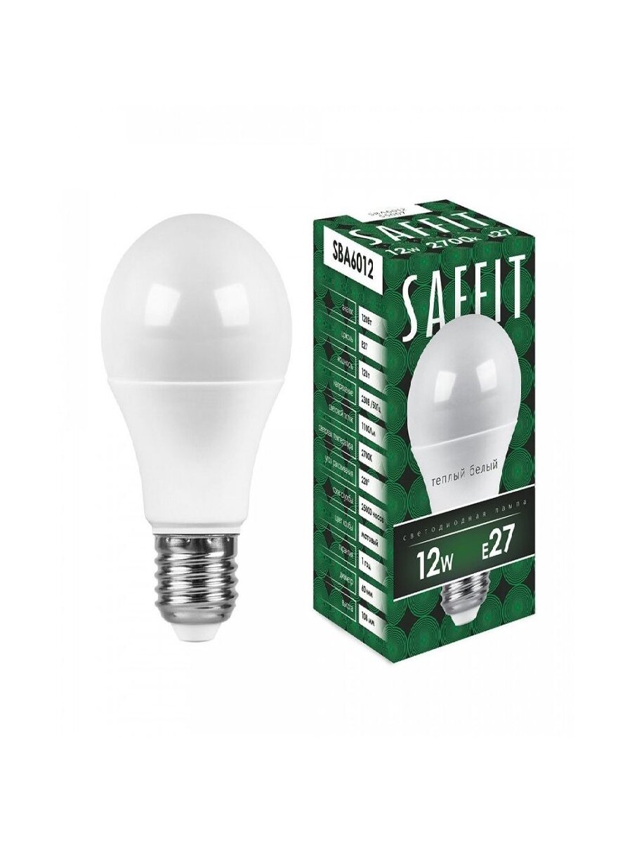 Отзывы на (15 шт.) Светодиодная лампочка Saffit ЛОН А60 E27 12W(1100Lm) 2700K 2K матовая 112x60 SBA6012 55007 Теплый белый. Цоколь E27