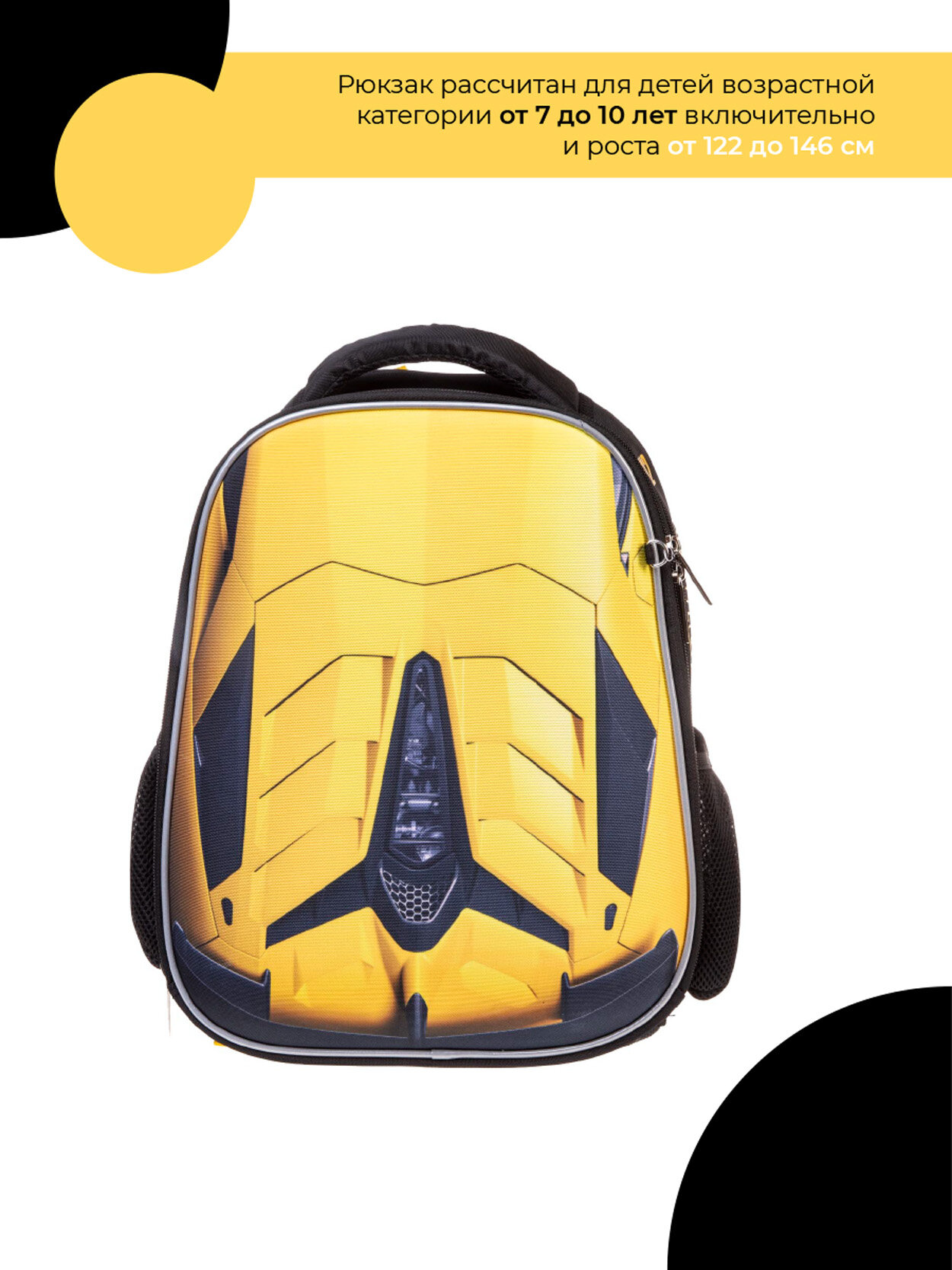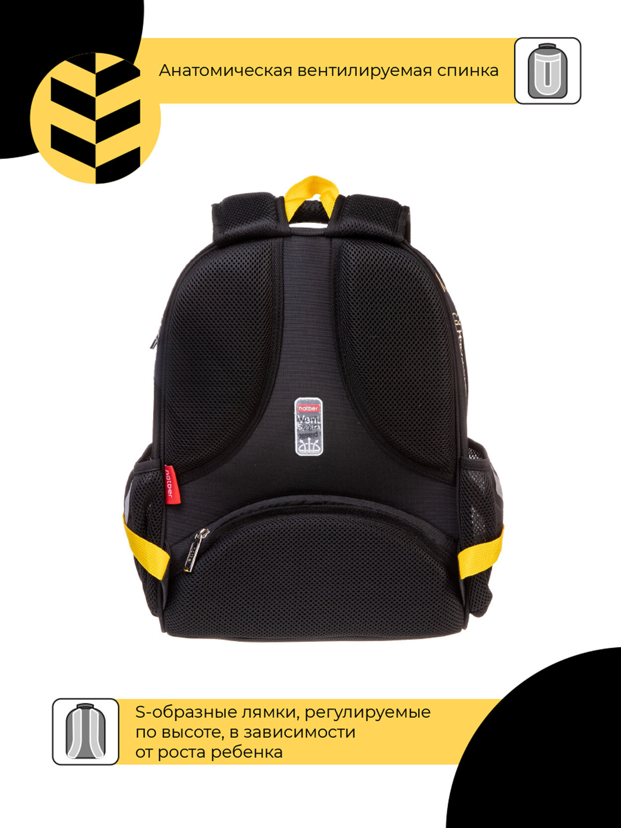 Рюкзак каркасный 38 х 29 х 15 см, Hatber Ergonomic light "Скорость и мощь", жёлтый NRk_71044