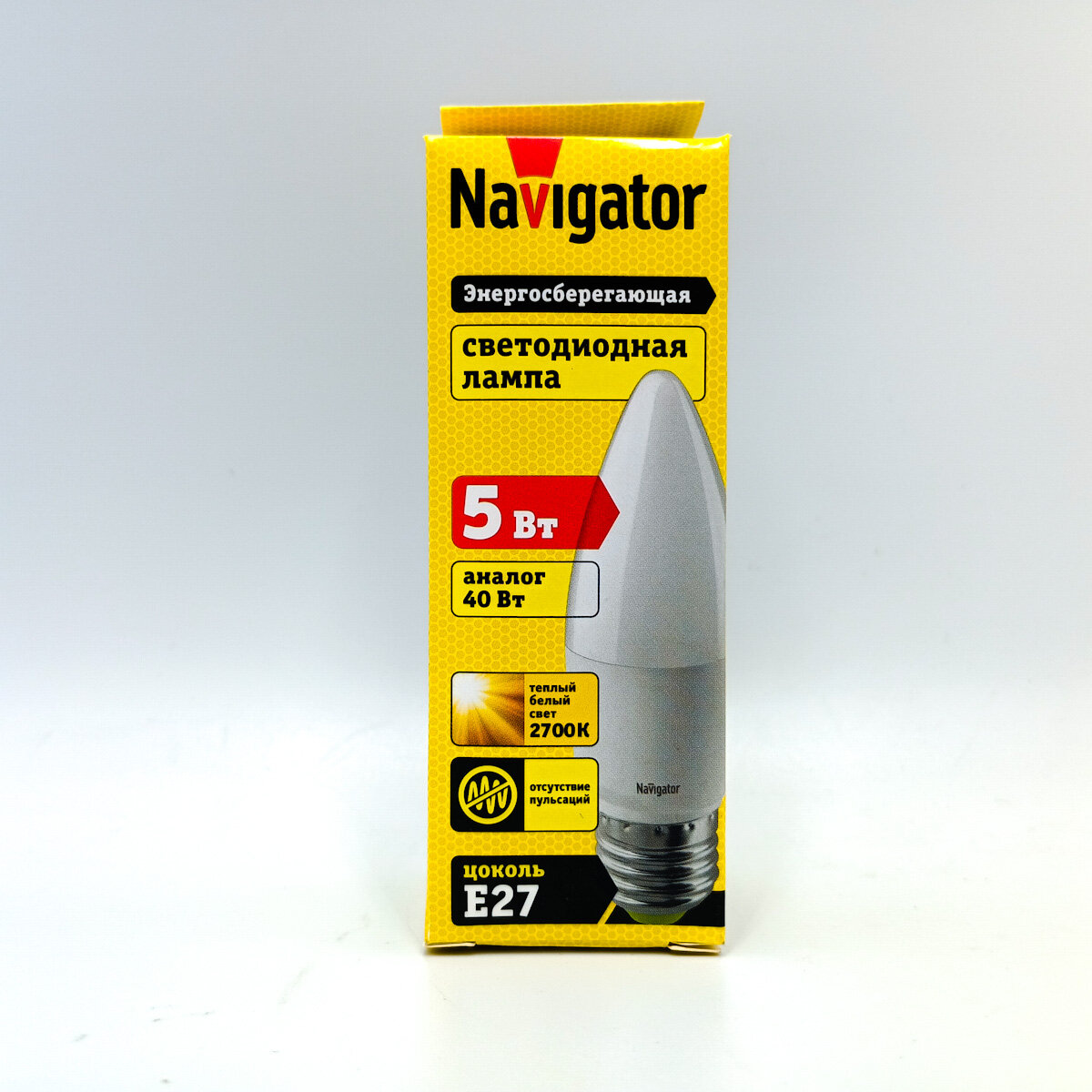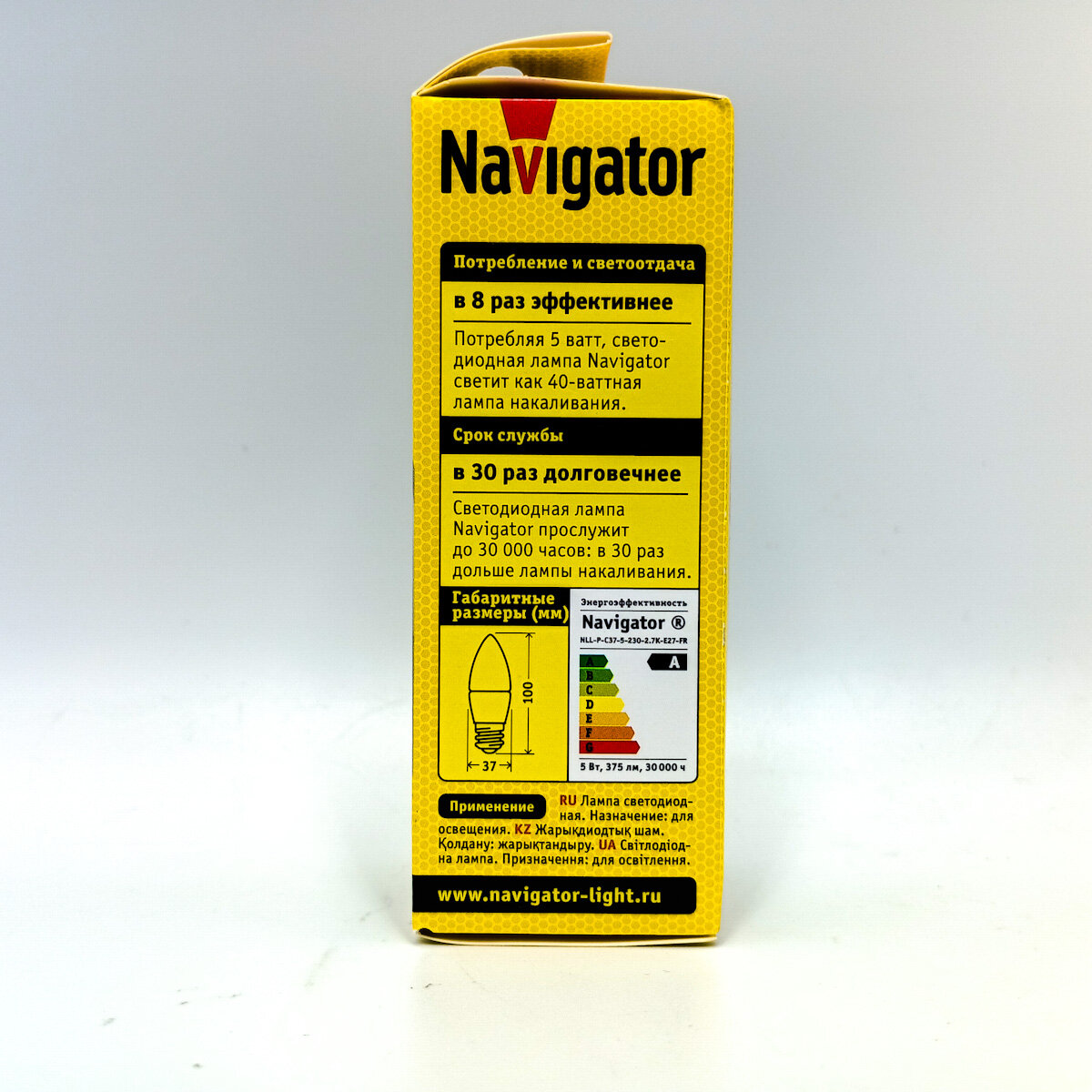 Отзывы на (3 шт.) Светодиодная лампочка Navigator C37 свеча, мощность 5Вт, напряжение питания 230В, цветовая температура 2700K, теплый белый свет, цоколь E27, размер 37х100 мм, NLL-P-C37-5-230-2.7K-E27-FR