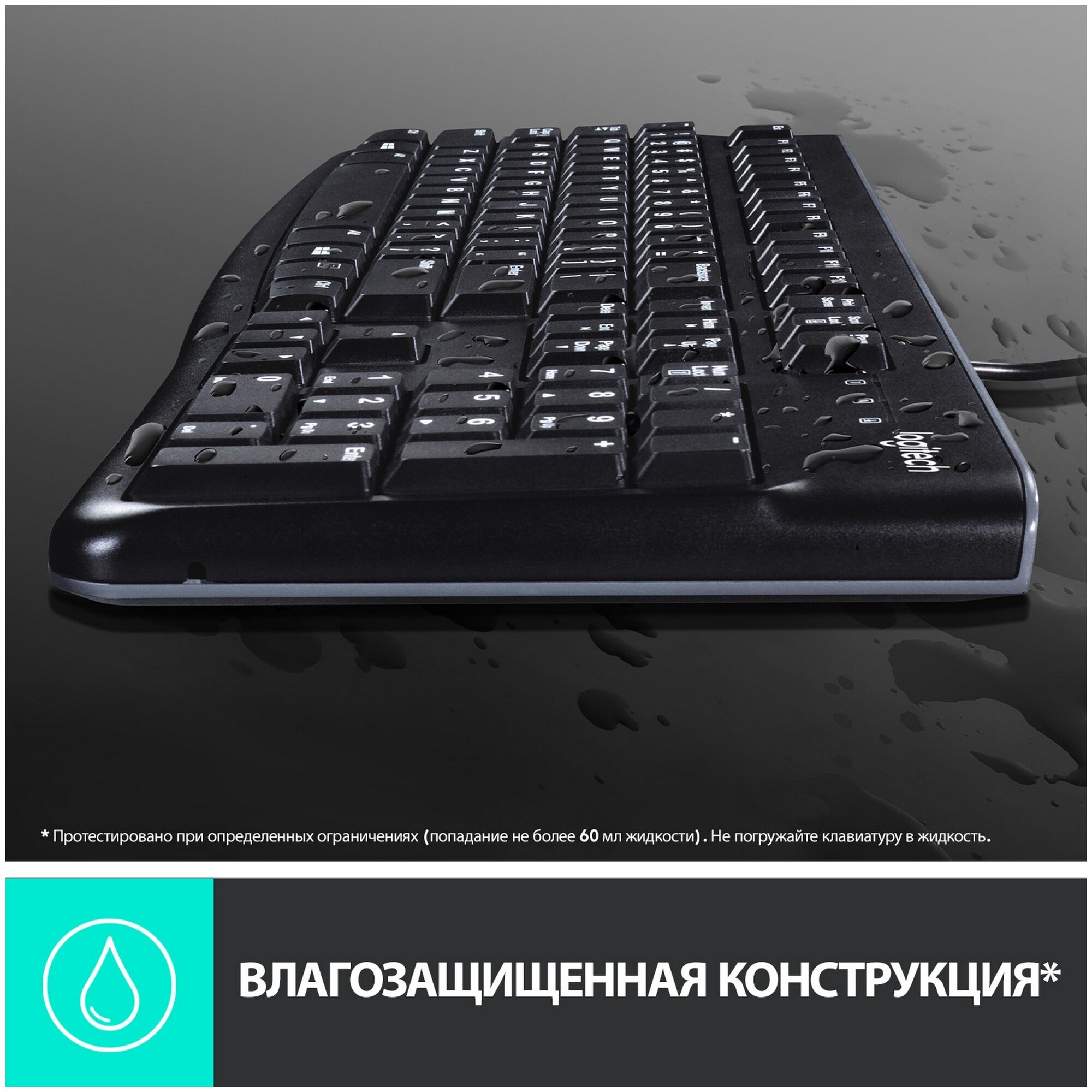 Клавиатура Logitech K120 черная, офисная, 104 клавиши, защита от воды USB 1.5м, RTL