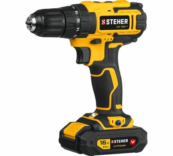 STEHER 16 В, 1 АКБ (2Ач), в кейсе, дрель-шуруповерт CD-160-1 информация:
