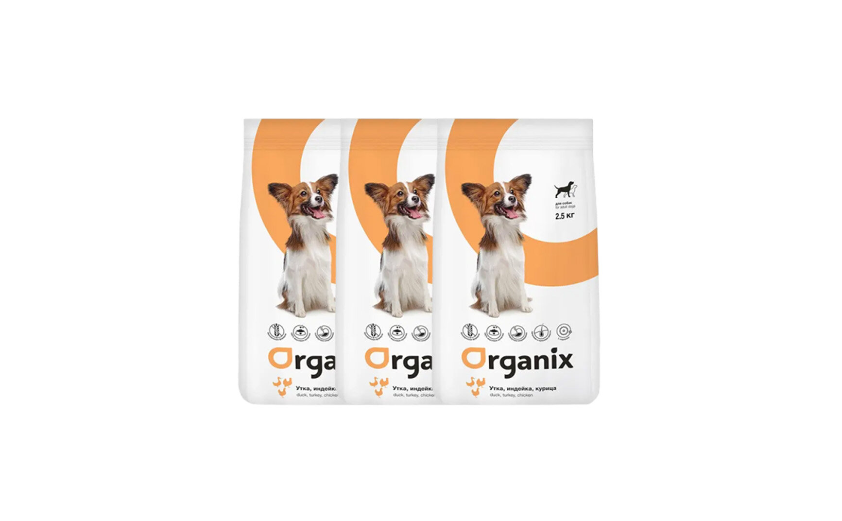 Корм сухой Organix для собак с уткой, индейкой и курицей, беззерновой, 2.5 кг