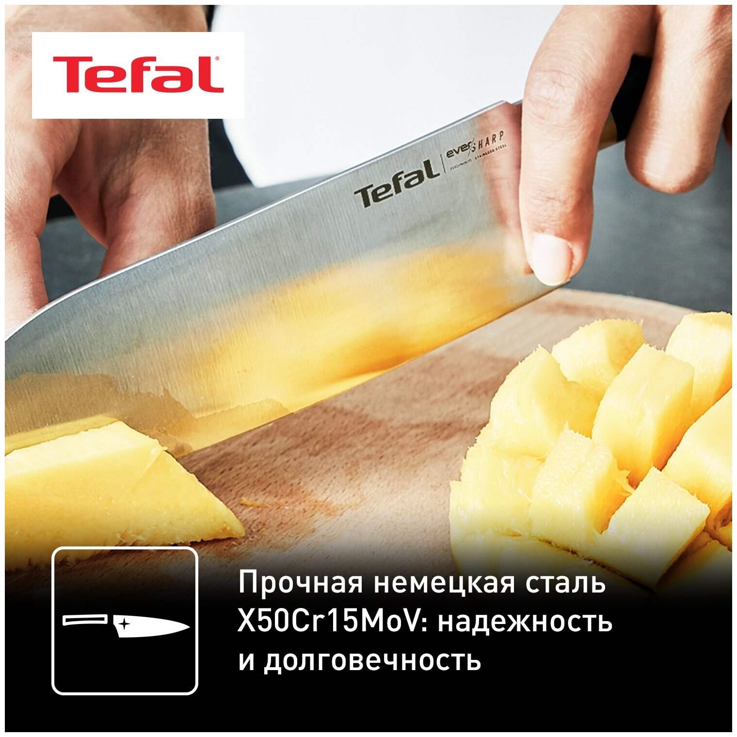 10 цен на Нож сантоку Tefal Ever Sharp K2579024, длина лезвия 16.5 см, немецкая нержавеющая сталь, чехол в комплекте