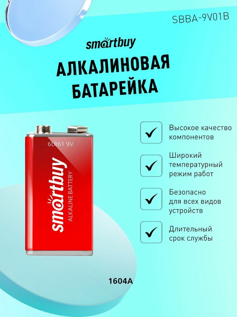 Батарейка алкалиновая Крона SmartBuy (SBBA-9V01B) в блистере