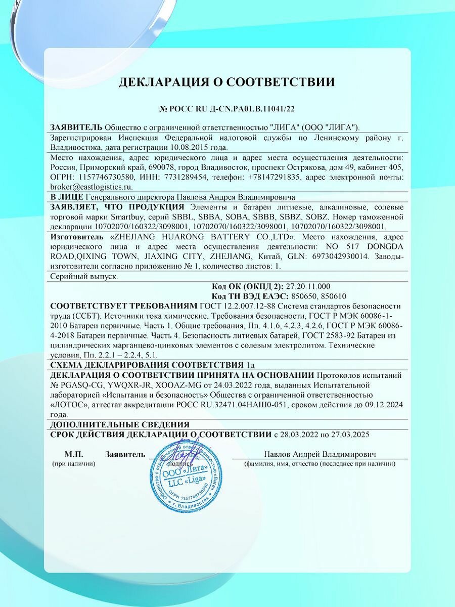 | Типоразмер | Крона (6LR61 / 6LF22 / 6KR61) |