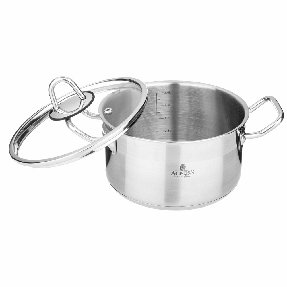 Кастрюля с крышкой Agness 18х10см, 2.3л, нержавеющая сталь, стекло информация: