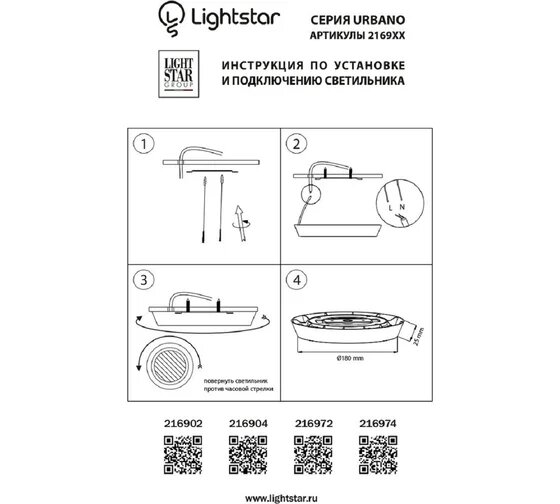 Потолочный светильник Lightstar Urbano 216904 . информация: