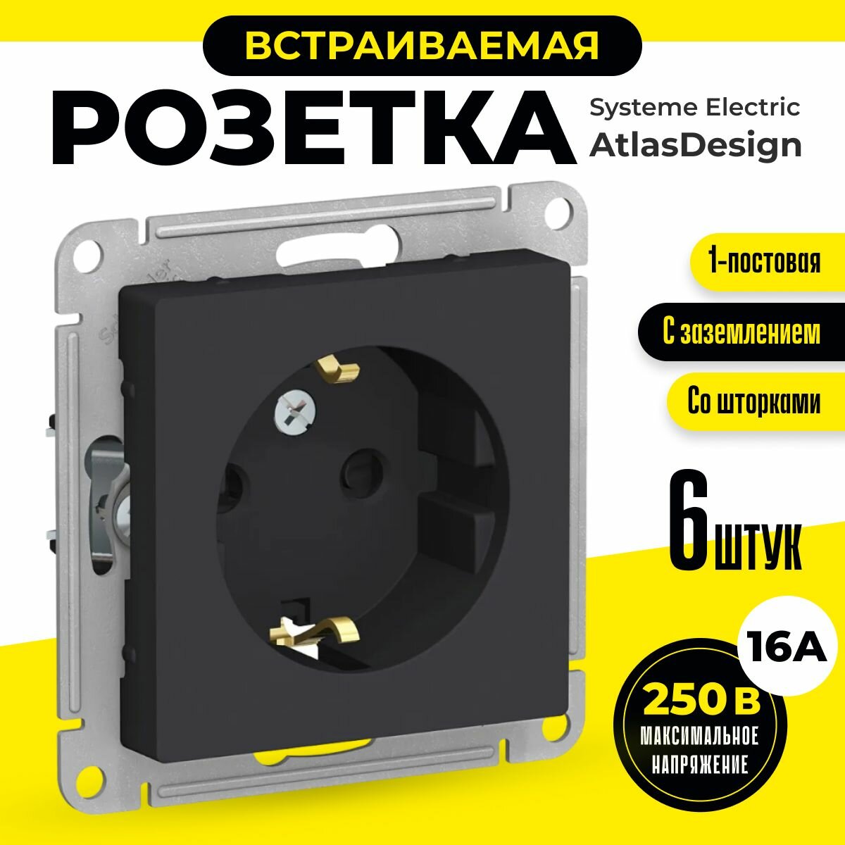 5 шт. Systeme Electric AtlasDesign Базальт, Розетка с заземлением со шторками, 16А, механизм, ATN001445 2 501 ₽