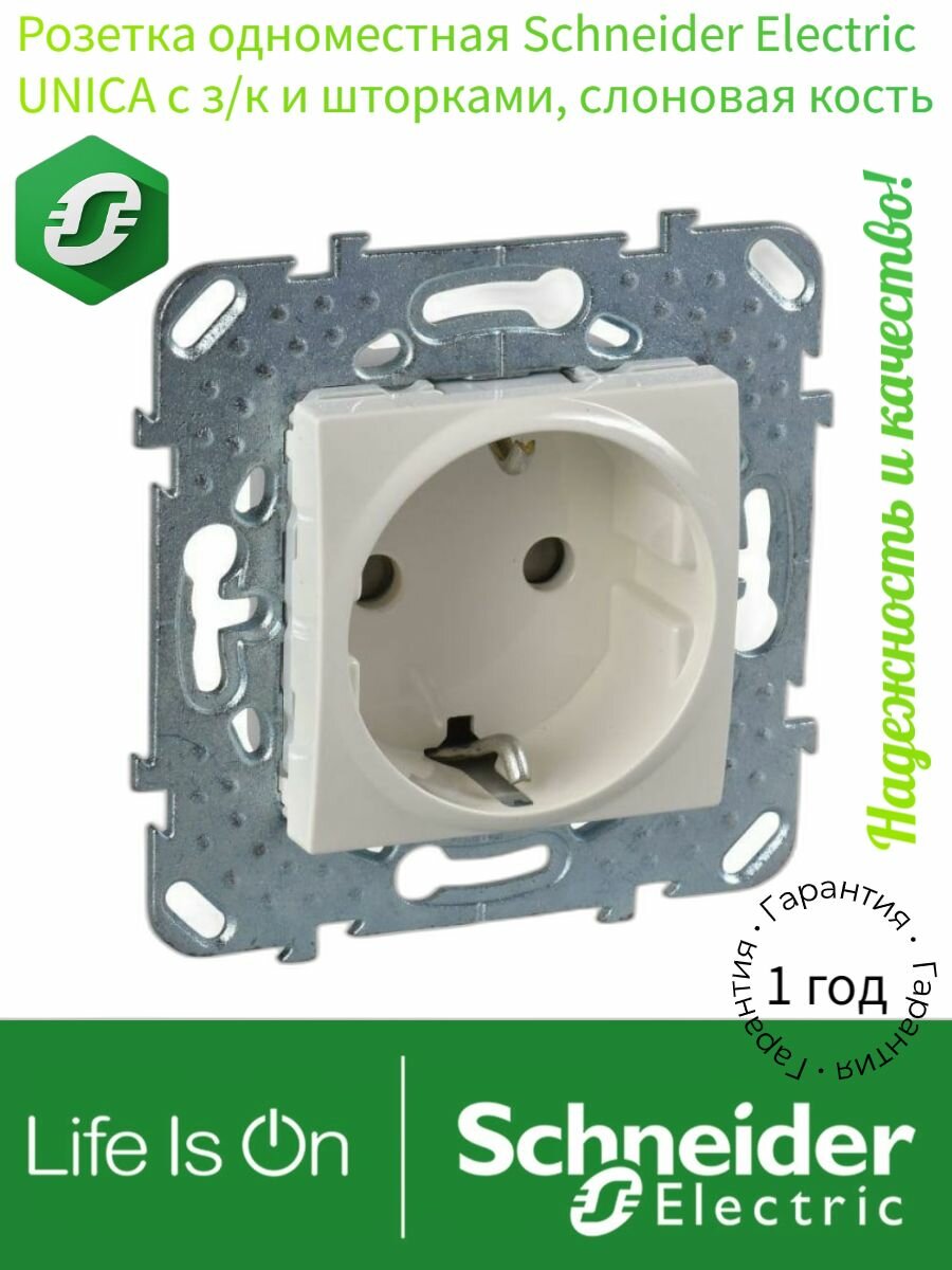 Розетка Schneider Electric MGU5.037.25ZD UNICA, 16 А, с защитной шторкой информация: