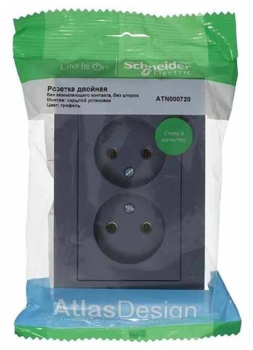 Отзывы на Розетка двойная в сборе Schneider Electric AtlasDesign без заземления, без шторок, 16А Грифель