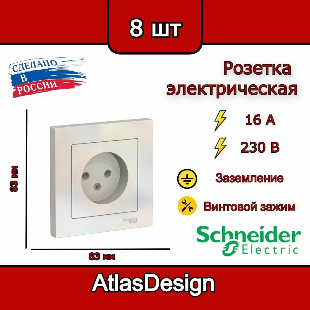 Розетка без заземления, в сборе, жемчуг Schneider Electric AtlasDesign (комплект 8шт) информация: