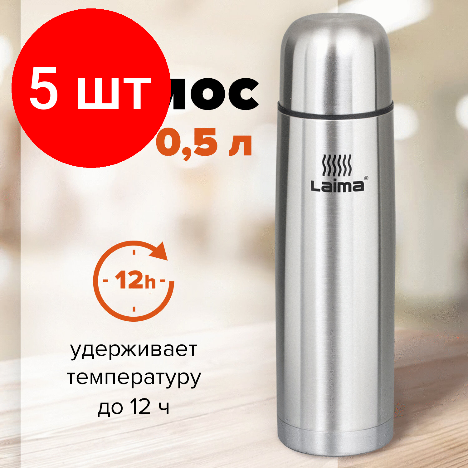Комплект 5 шт, Термос LAIMA классический с узким горлом, 0.5 л, нержавеющая сталь, 601412 информация:
