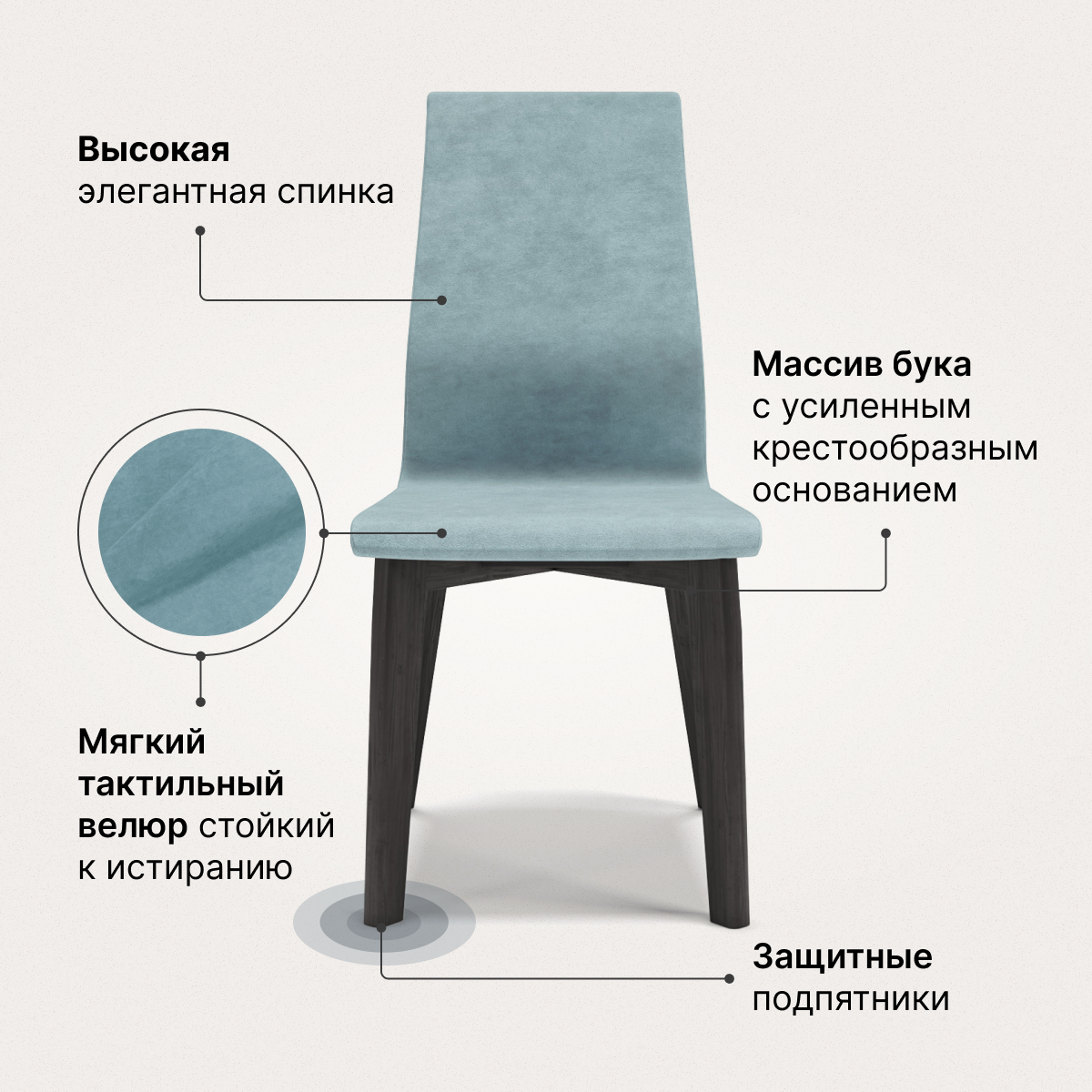 Стул для кухни ANNI HAUS A-vito, массив бука, велюр, цвет: натуральный/smoke