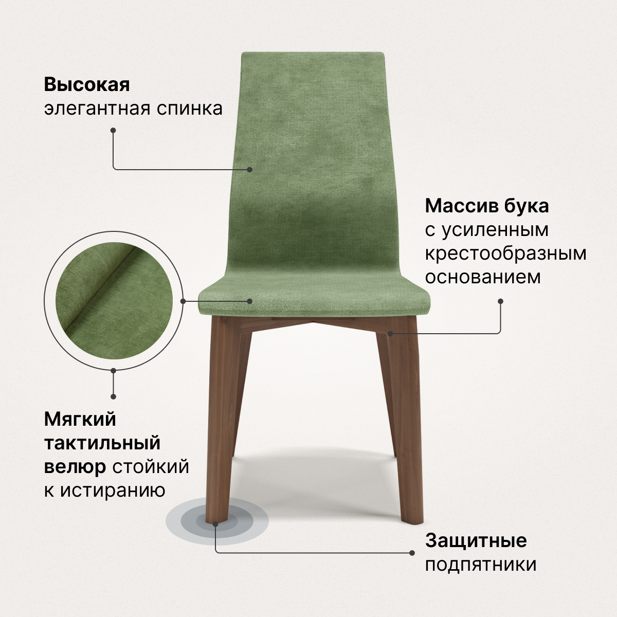 Стул для кухни ANNI HAUS A-vito, массив бука, велюр, цвет: натуральный/hummus