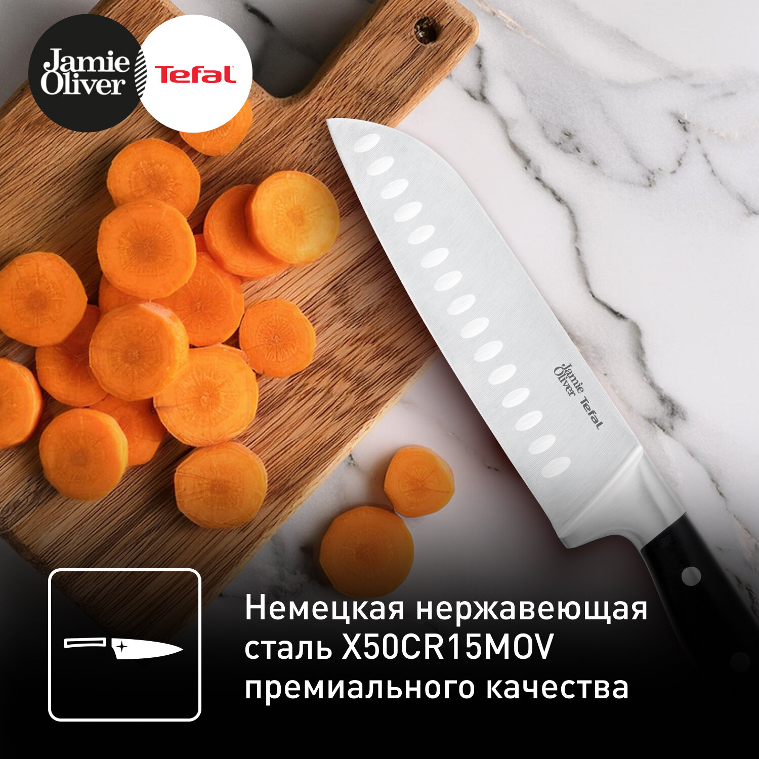Нож сантоку Tefal Jamie Oliver K2671844, 18 см, нержавеющая сталь информация: