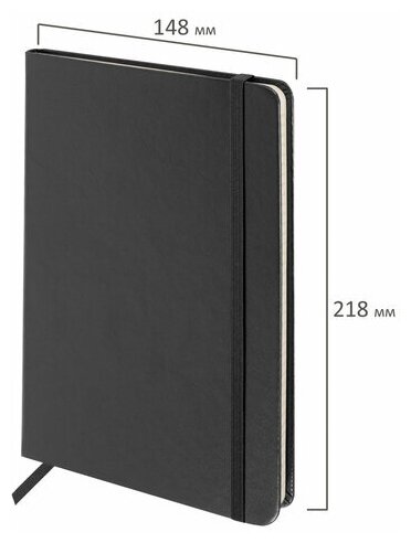 Бизнес-блокнот, записная книжка, тетрадь А5 (148x218 мм), Brauberg Metropolis Special, под кожу, 80 л., резинка,клетка, черный, 111577