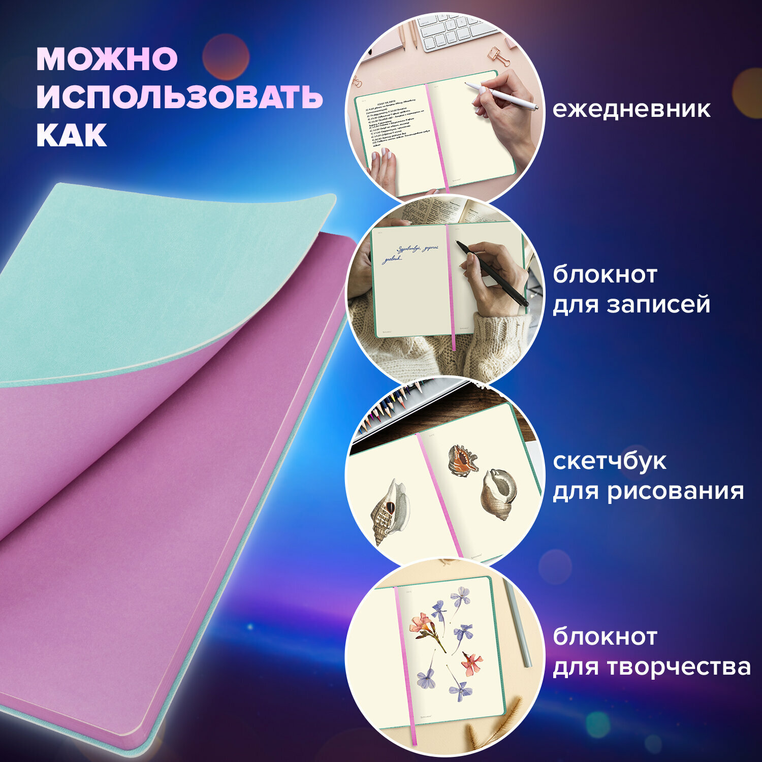 Блокнот-скетчбук А5 (148x218 мм), BRAUBERG "Metropolis Mix", под кожу, 80 л., без линовки, мятный, 113319, 113319 741 ₽