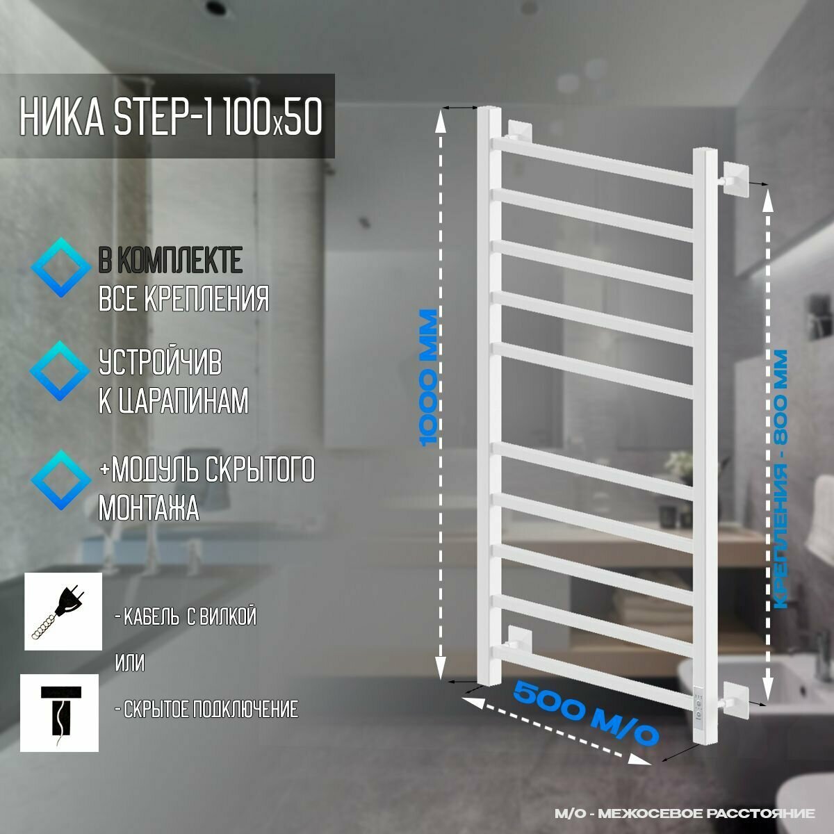 10 цен на Полотенцесушитель Электрич.кабельный Ника STEP-1 100/50 RAL9016 белый матовый U