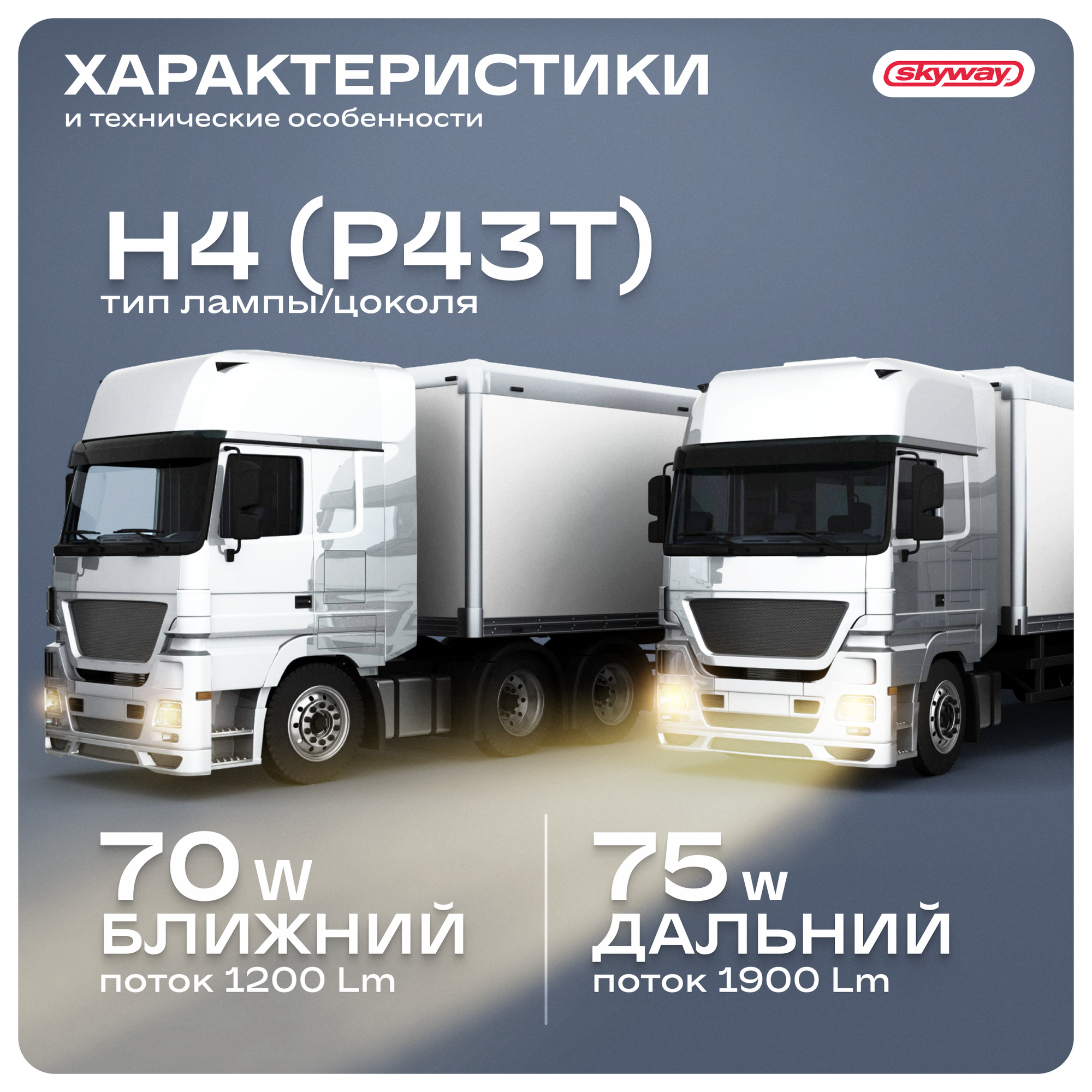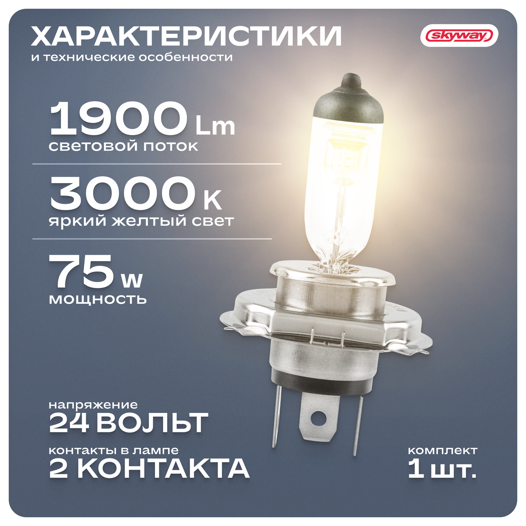 Автолампа H4 24V 7570W P43T 2-КОНТ спутник 1 ШТ ближний, дальн, SKYWAY S09101045 (1 шт.)