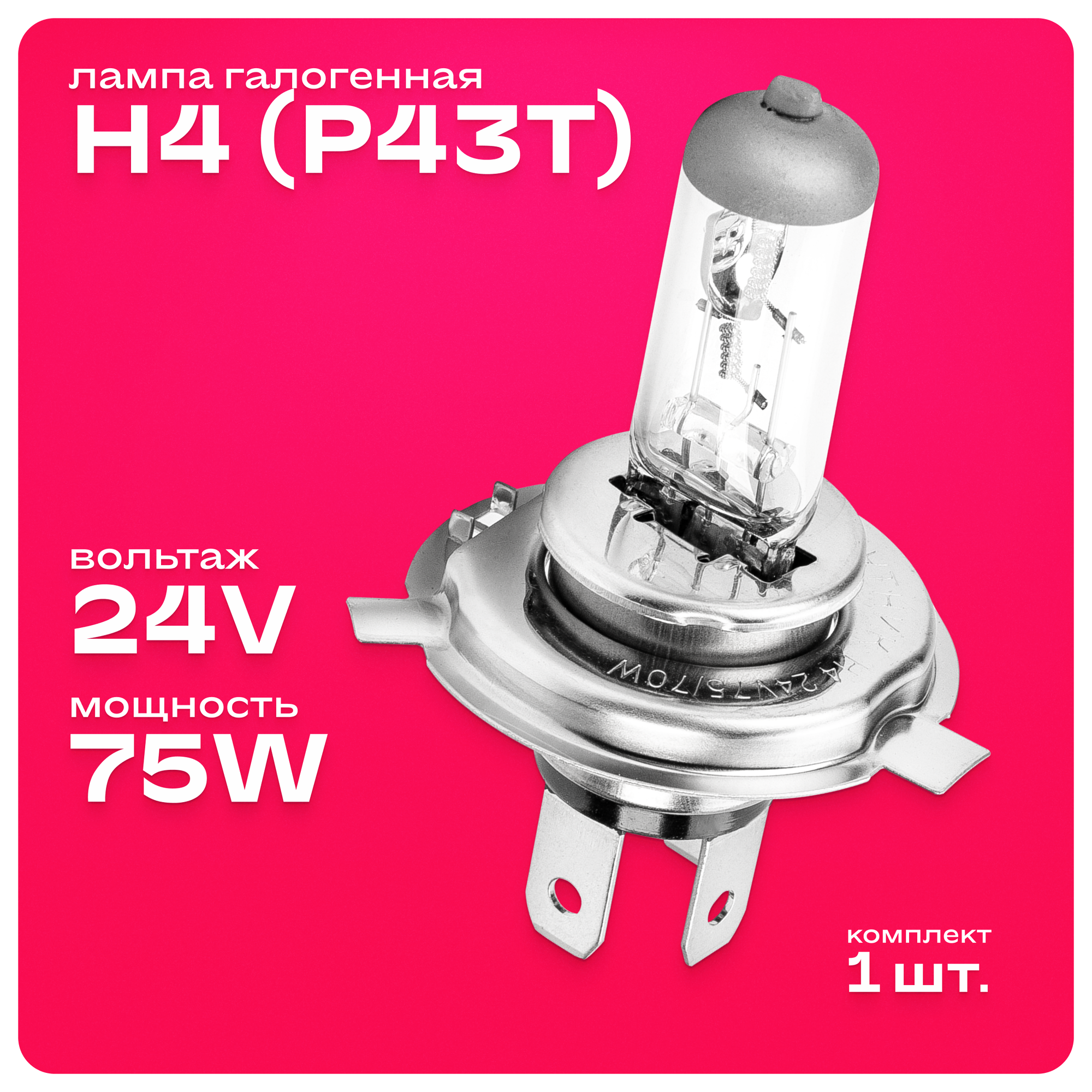 Лампа H4 24V 75/70W P43t 2-конт. 1шт (ближний, дальний свет) спутник информация:
