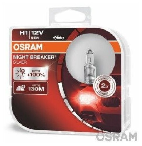 H1 12v- 55w (p14,5s) (+100 света+серебр.диз.) night breake silver, OSRAM 64150NBS (1 шт.)
