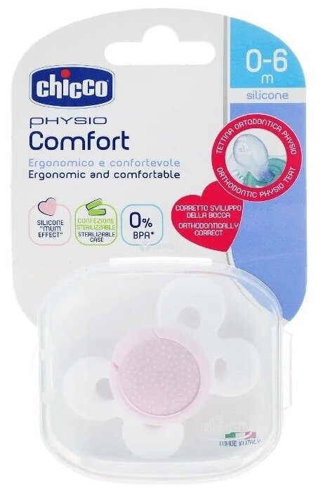 10 цен на Пустышка для новорожденных Chicco Physio Comfort с футляром, силиконовая для малышей ортодонтическая, 0-6 мес. Рисунок горошек
