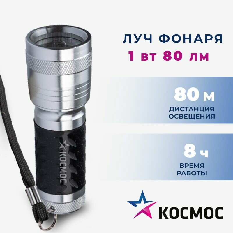 Отзывы на Фонарь ручной космос (KOS109B)/1ВтLED/3xAAА/корпус анодированный алюминий/ремешок ручной