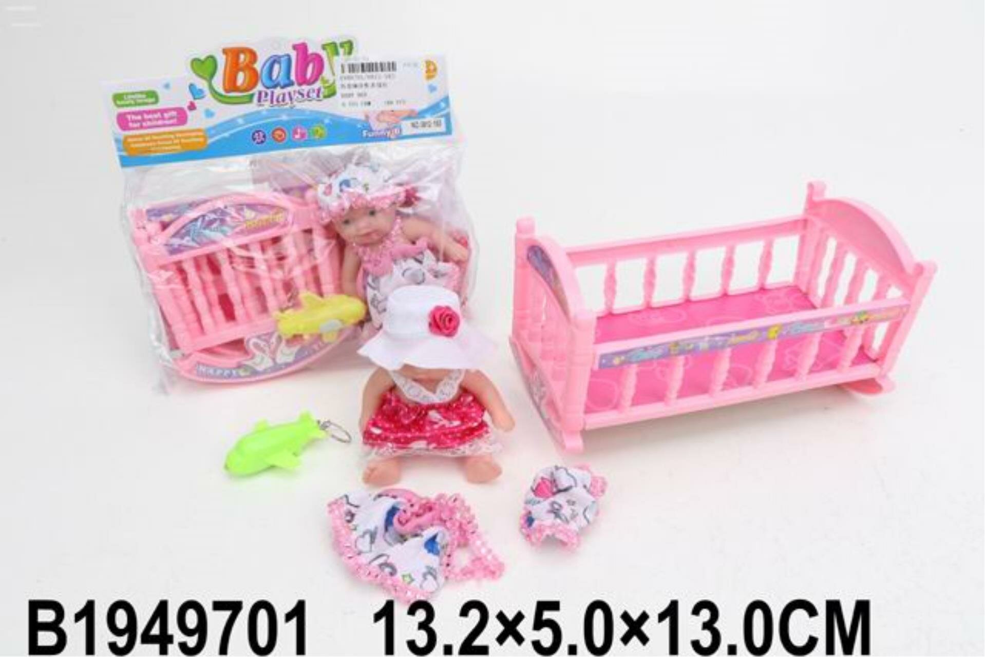 Пупс с кроваткой и аксессуарами, в п 13,2x5,5x13 см. информация: