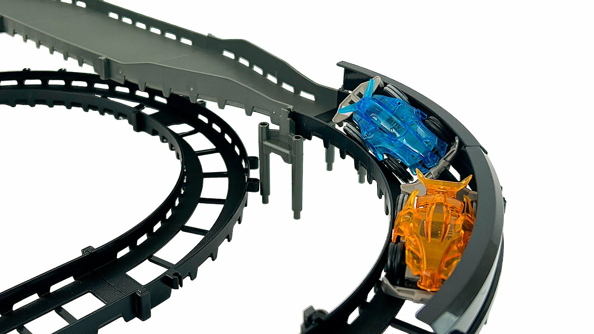 | Комплектация | трасса из прочного эластичного пластика, 2 модели автомобиля с электродвигателем, 2 пульта управления |