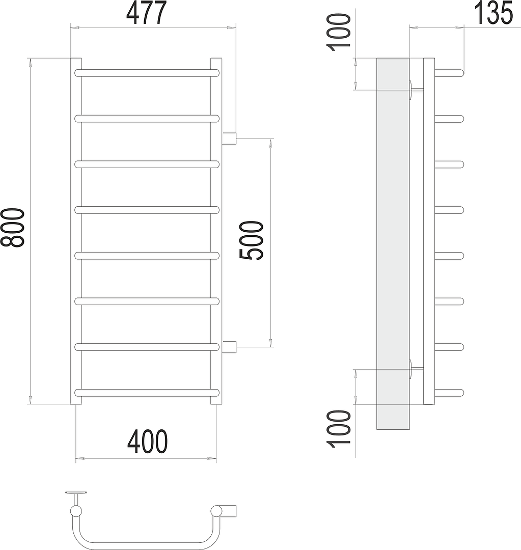 | Дополнительная информация | В комплекте: кран маевского, крепежь к стене, заглушка; Дополнительно можно приобрести: уголки либо краны,эксцентрики и отражатели. |
