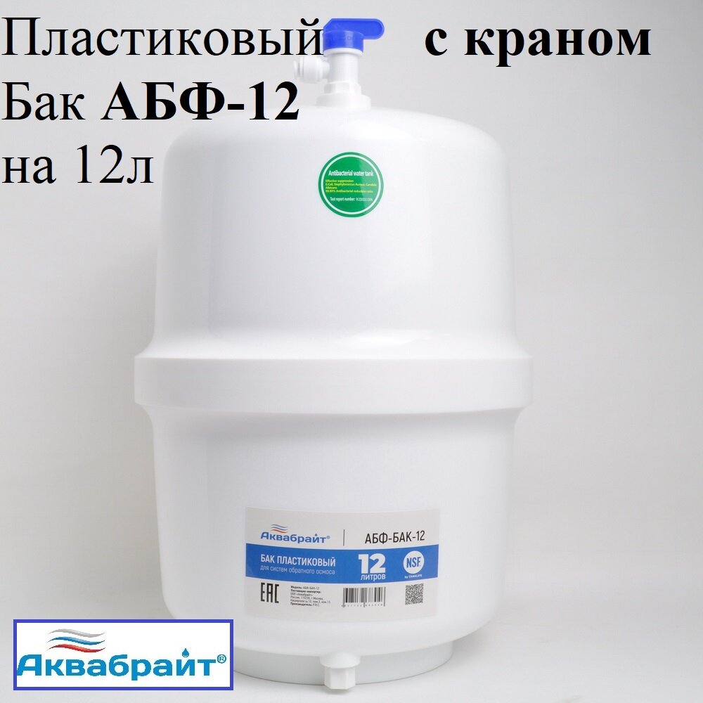 АБФ БАК накопительный пластиковой Аквабрайт для систем обратного осмоса 12 литров. информация: