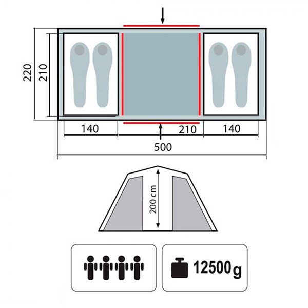 | Водостойкость тента/дна | 5000 / 10000 мм в.ст. |