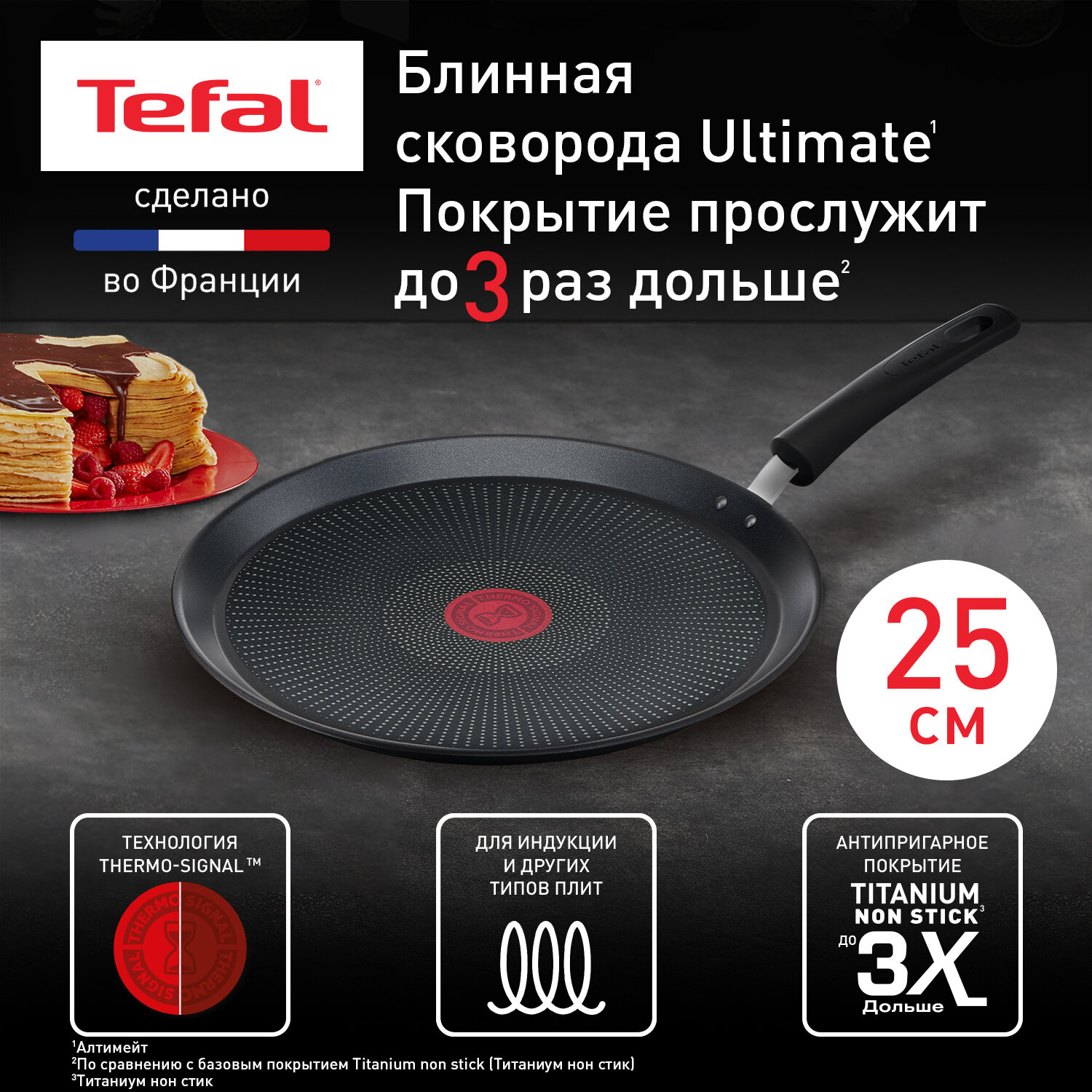Сковорода для блинов Tefal Ultimate, с антипригарным покрытием, 25 см