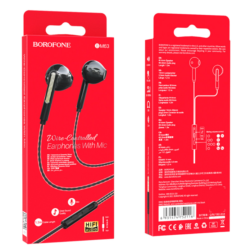 Проводные наушники BM63, Borofone, чёрная информация: