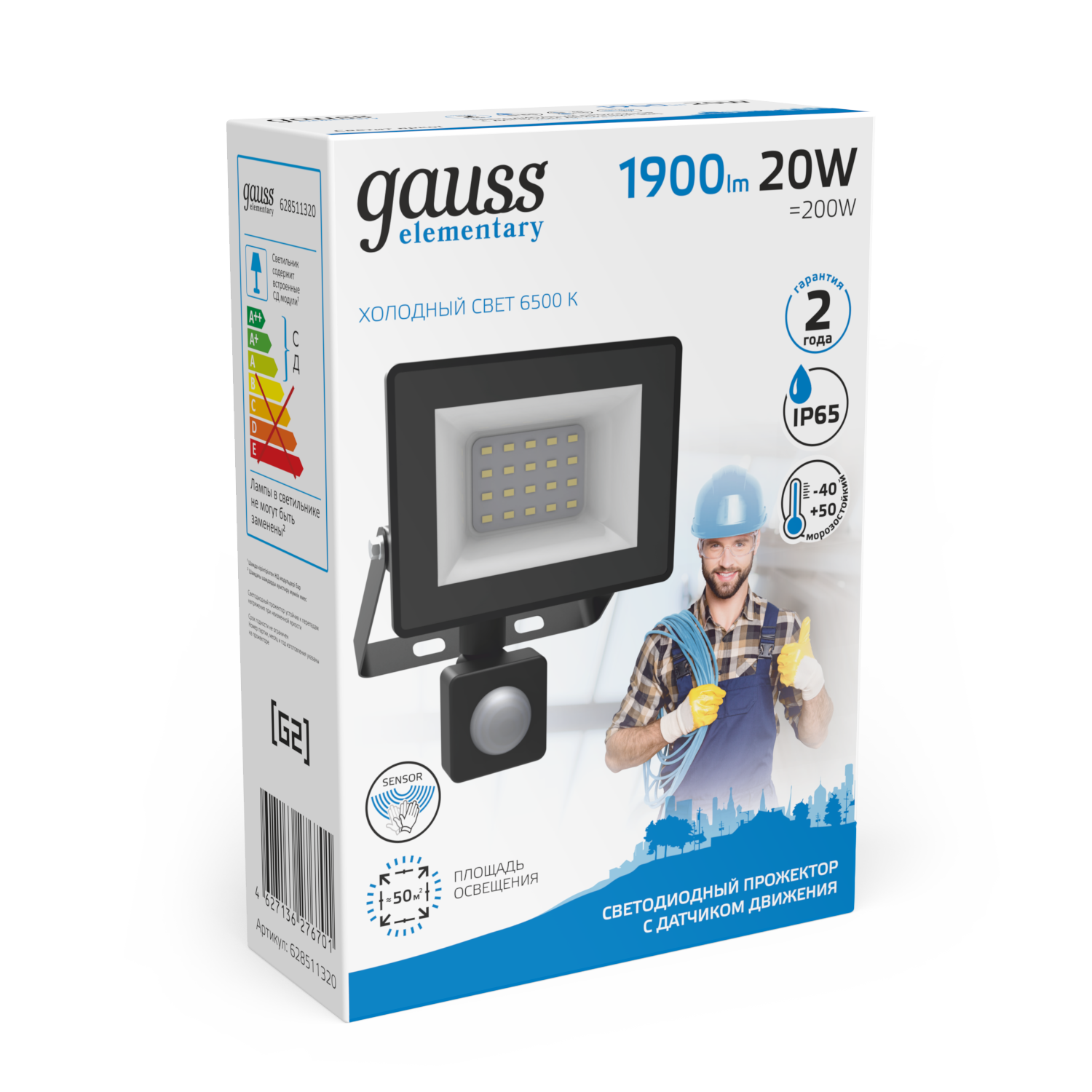 Прожектор светодиодный с датчиком движения gauss Elementary-S 628511320, 20 Вт, свет: холодный белый
