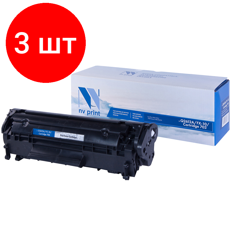 10 цен на Комплект 3 шт, Картридж совм. NV Print Q2612A/FX-10/Cartr 703 черный для HP 1010/1012 Canon MF4010/4018 (2000стр.)