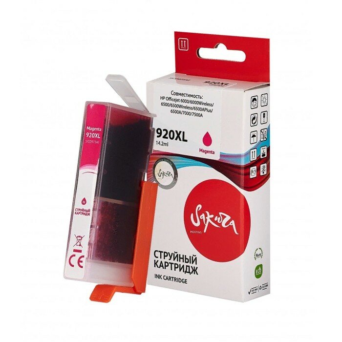 Картридж CD973AE (№920XL Magenta) для HP, струйный, пурпурный, 14,6 мл., 980 страниц, Sakura