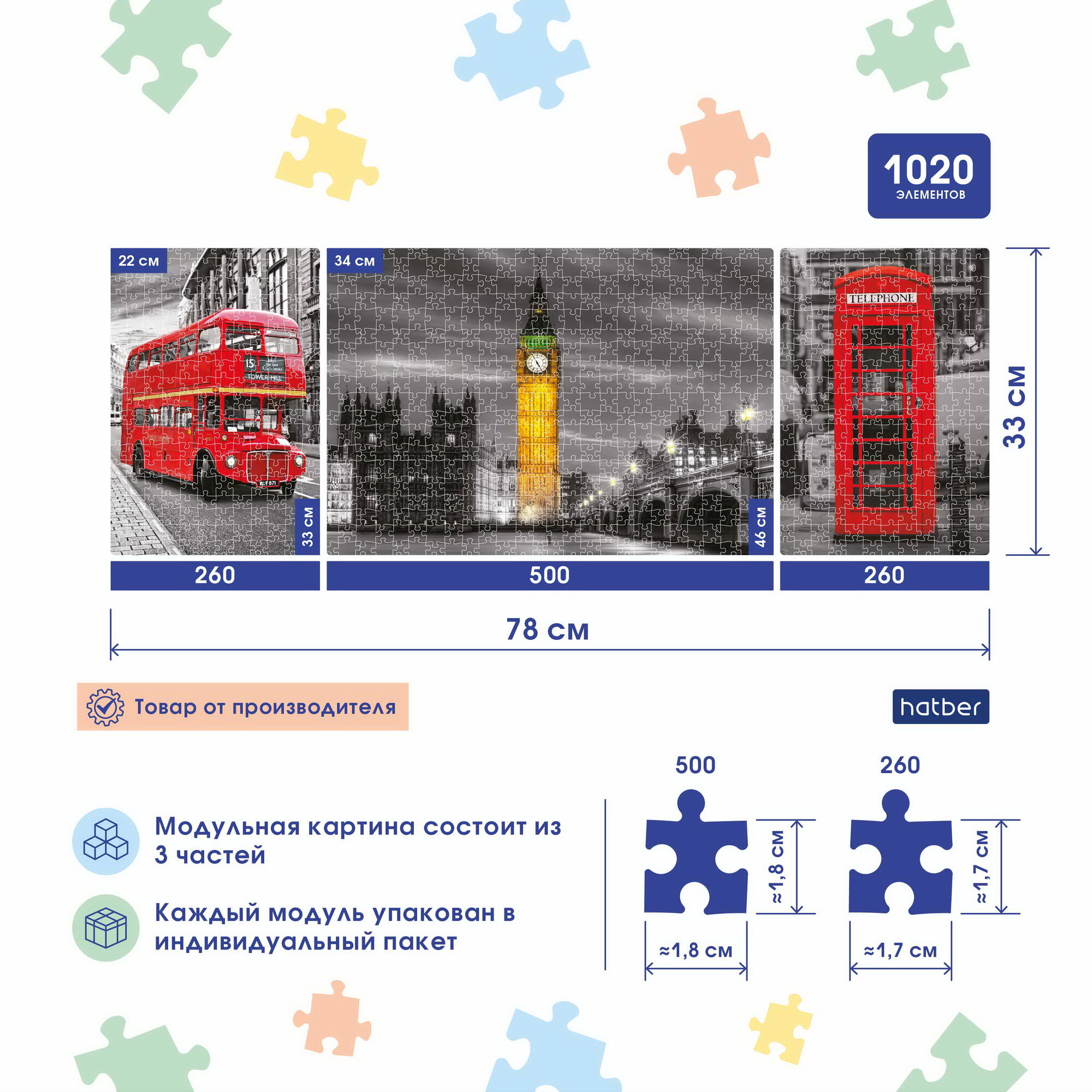 Пазл Hatber "Лондон" 260+500+260 элементов 3 картинки в коробке информация: