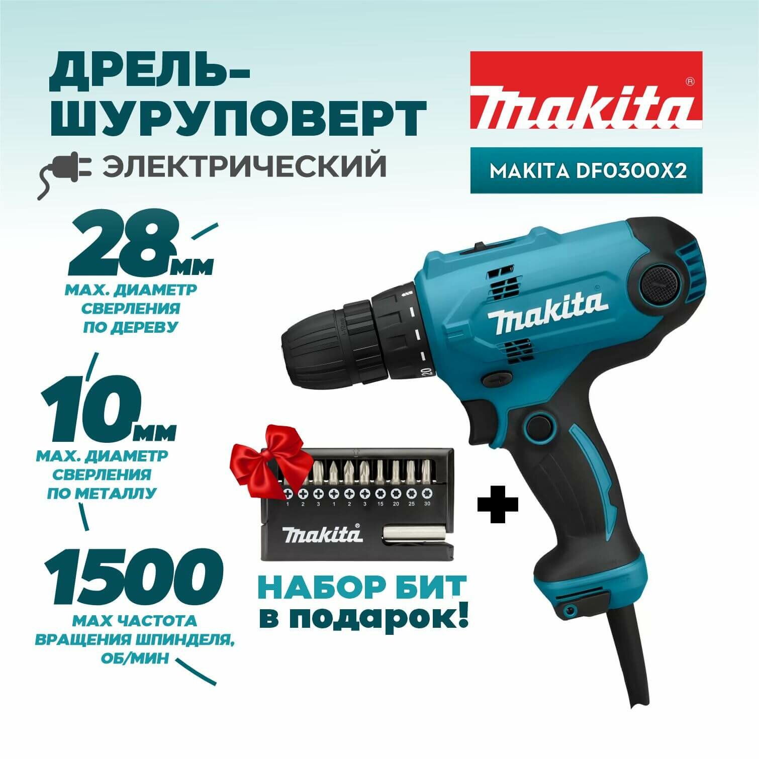 Дрель-шуруповерт Makita DF0300X2, сетевой