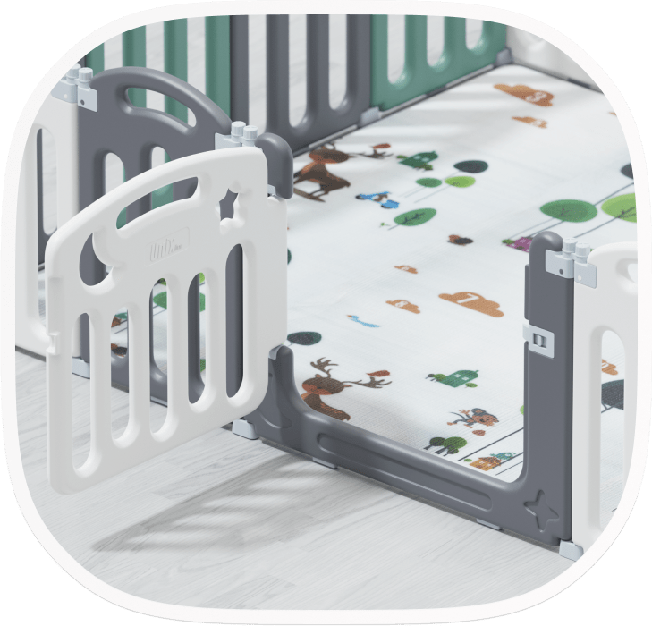 Манеж UNIX Kids Simple, для дома и улицы, бизиборд, от 0 месяцев, складной, белый/серый/зеленый, 151x151 см 14 433 ₽