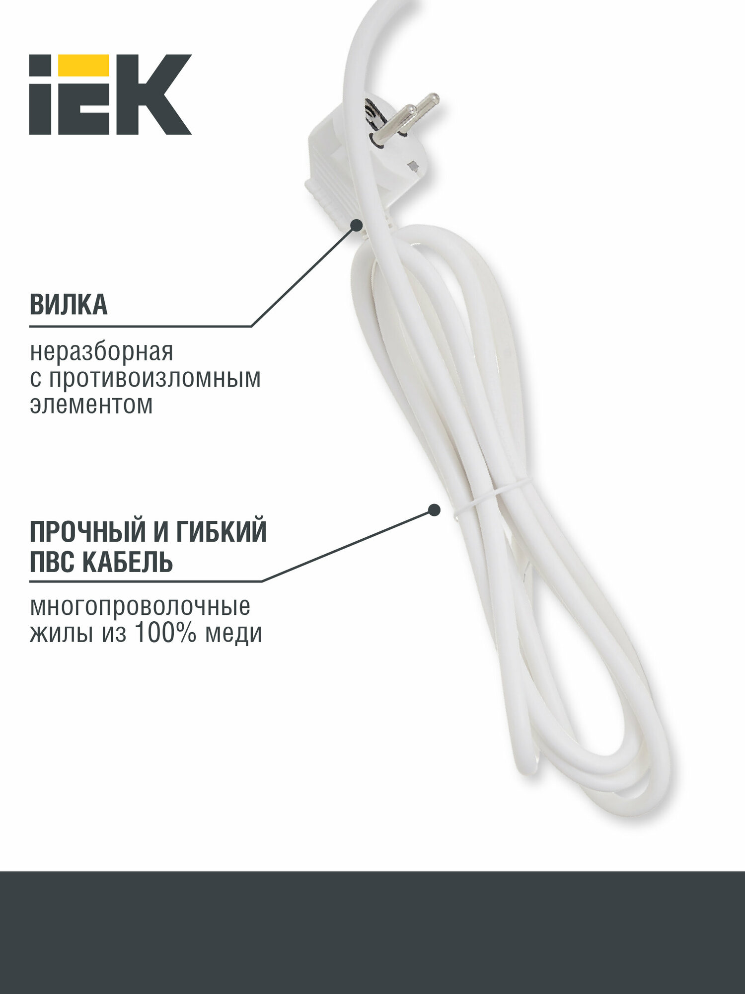 Удлинитель IEK У3, 2 x 0,75 мм², 3 розетки, без заземления, 3 м, белый 766 ₽