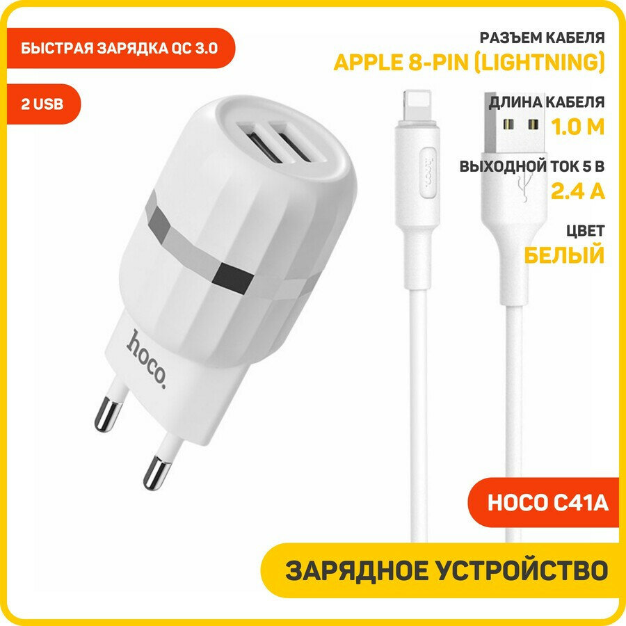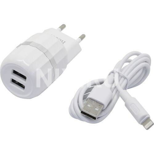 Сетевое зарядное устройство (СЗУ) Hoco C41A (2 USB) + кабель Lightning, 2.4 А, белый