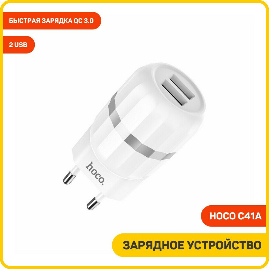 Отзывы на Сетевое зарядное устройство Hoco C41A Wisdom Dual Port Charger Set With Micro Cable (EU) 2*USB, 2.4А, белый