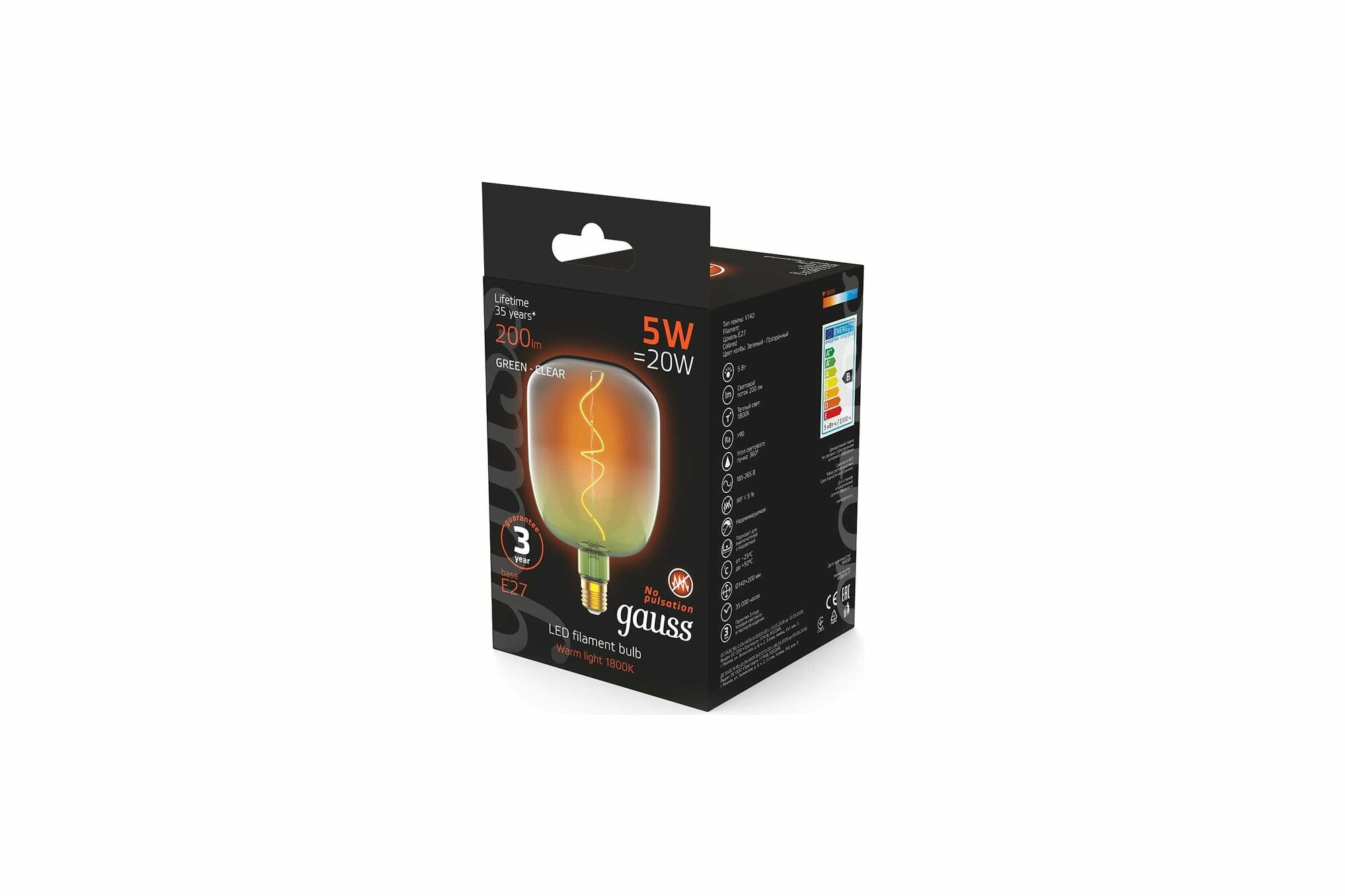 Лампа Gauss Filament V140 5W 200lm 1800К Е27 green-clear flexible LED 1/6 2 007 ₽
