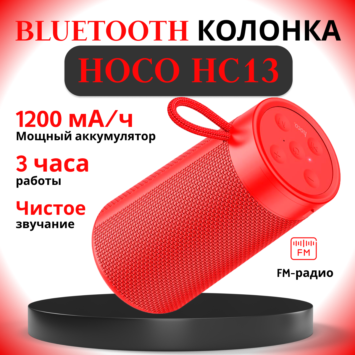 Портативная беспроводная Bluetooth колонка Hoco HC13 красная информация: